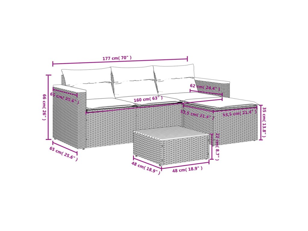 Tato zahradní sedací souprava je dokonalým doplňkem vaší zahrady, terasy nebo dvorku a poskytne vám pohodlné a příjemné místo, kde si můžete povídat s rodinou a přáteli nebo jen tak odpočívat a užívat si pobyt venku.