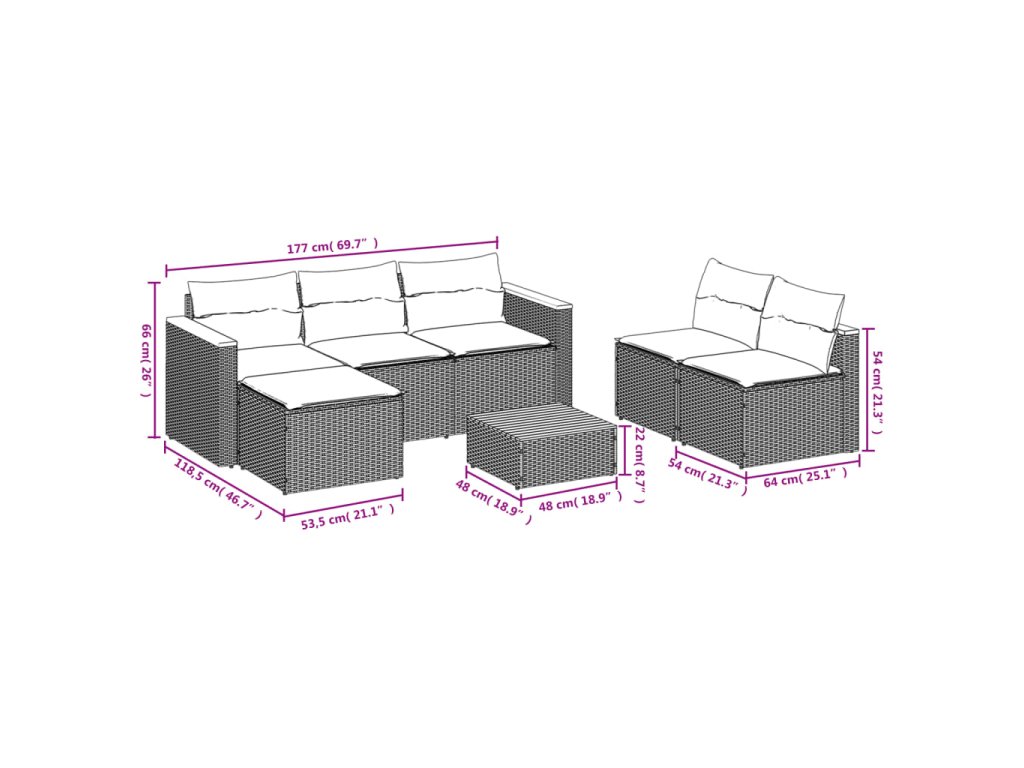 Tato zahradní sedací souprava je dokonalým doplňkem vaší zahrady, terasy nebo dvorku a poskytne vám pohodlné a příjemné místo, kde si můžete povídat s rodinou a přáteli nebo jen tak odpočívat a užívat si pobyt venku.
