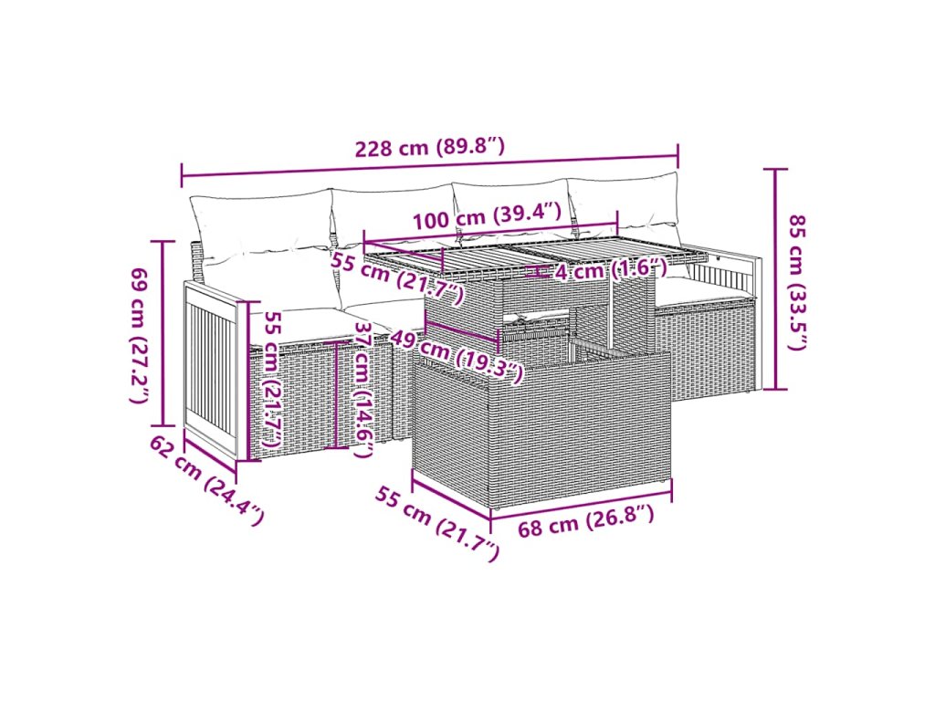 Tato zahradní sedací souprava je dokonalým doplňkem vaší zahrady, terasy nebo dvorku a poskytne vám pohodlné a příjemné místo, kde si můžete povídat s rodinou a přáteli nebo jen tak odpočívat a užívat si pobyt venku.