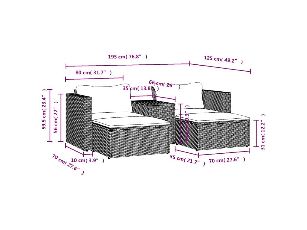 Tato zahradní sedací souprava je dokonalým doplňkem vaší zahrady, terasy nebo dvorku a poskytne vám pohodlné a příjemné místo, kde si můžete povídat s rodinou a přáteli nebo jen tak odpočívat a užívat si pobyt venku.