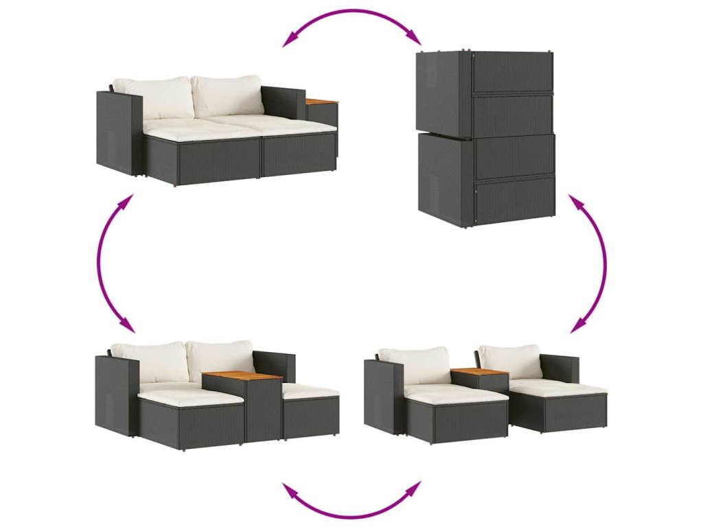 - Modulární design: Tato sada venkovního nábytku se vyznačuje modulární konstrukcí, je tedy zcela flexibilní a lze ji snadno přemisťovat, takže si můžete uspořádat venkovní nábytek dle vašich potřeb.