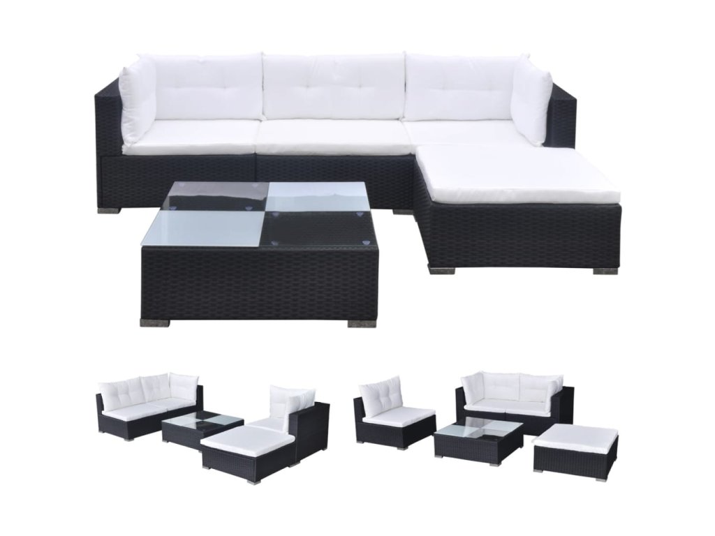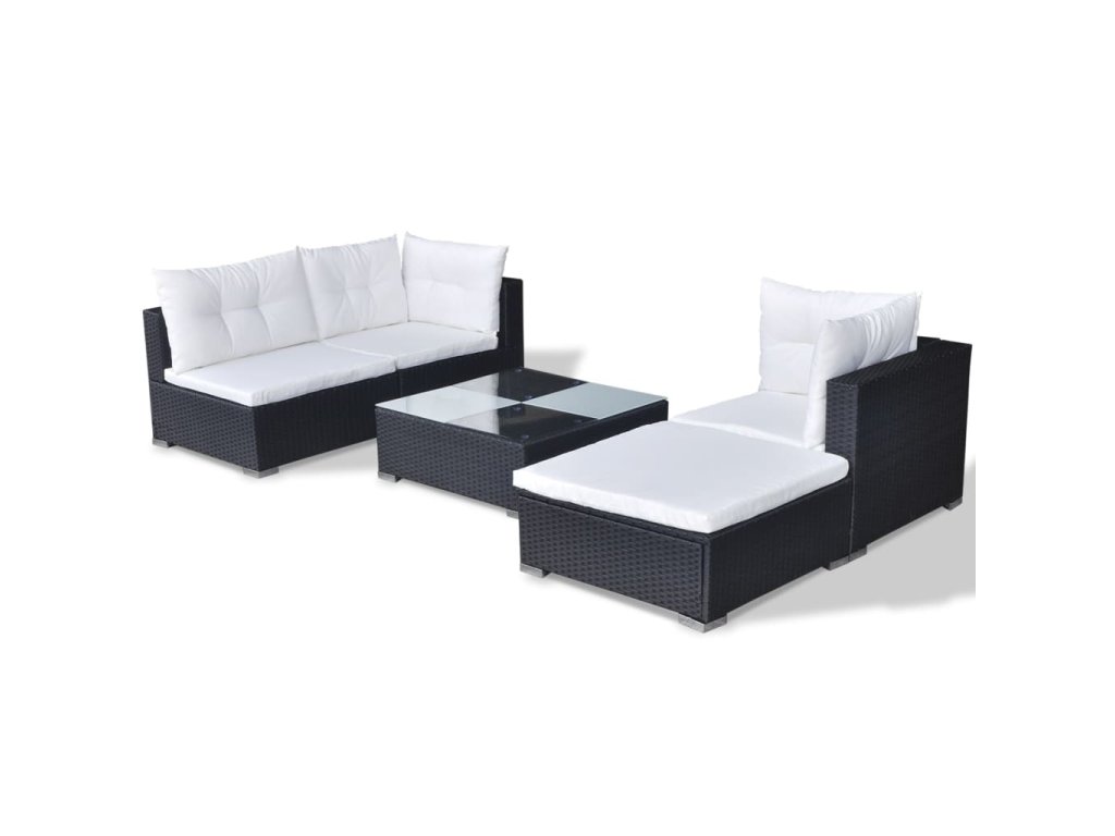 5dílná zahradní sedací souprava s poduškami polyratan černá 41872