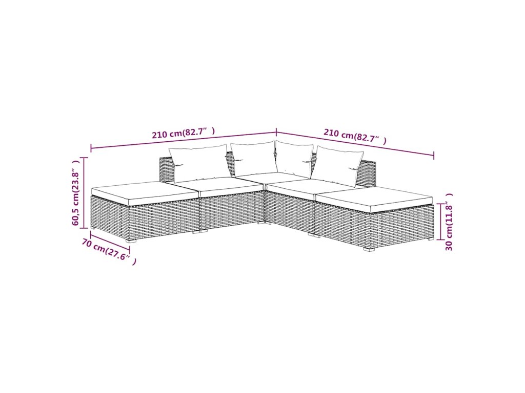 - Rozměry rohové/středové pohovky (každé): 70 x 70 x 60,5 cm (D x Š x V)