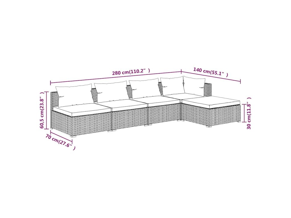 - Rozměry rohové/středové pohovky (každé): 70 x 70 x 60,5 cm (D x Š x V)