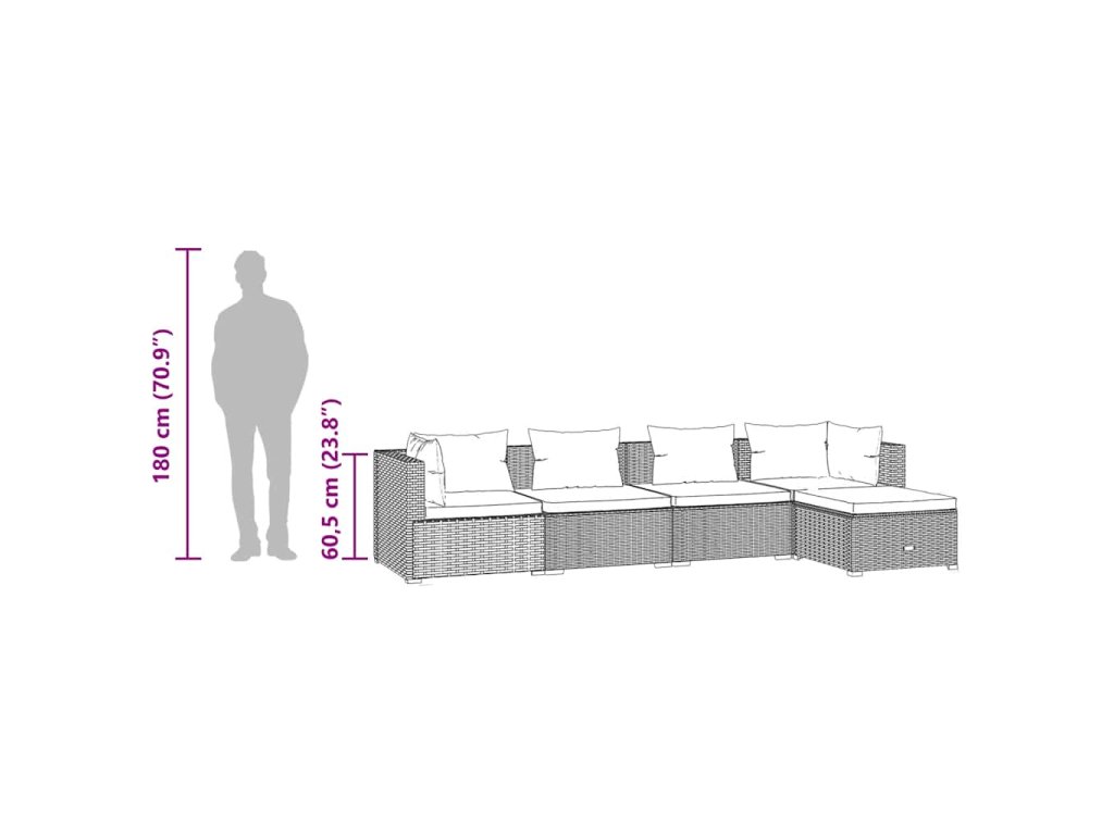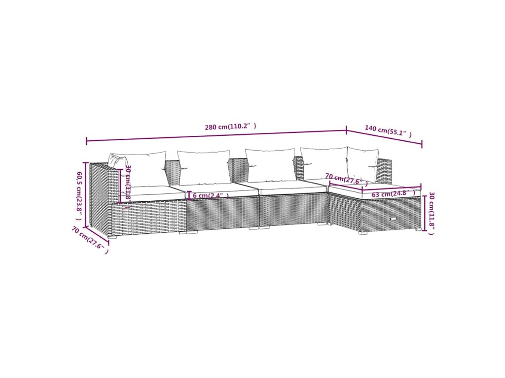 - Rozměry rohové/středové pohovky (každé): 70 x 70 x 60,5 cm (D x Š x V)