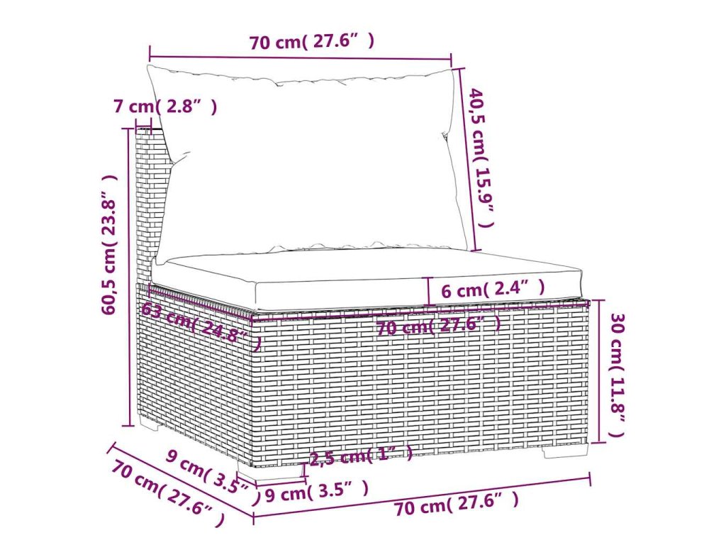 - Rozměry rohové/středové pohovky (každé): 70 x 70 x 60,5 cm (D x Š x V)