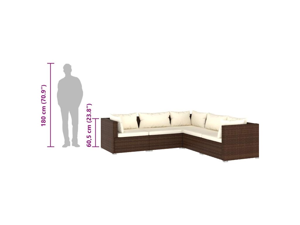 5dílná zahradní sedací souprava s poduškami polyratan hnědá 3101698