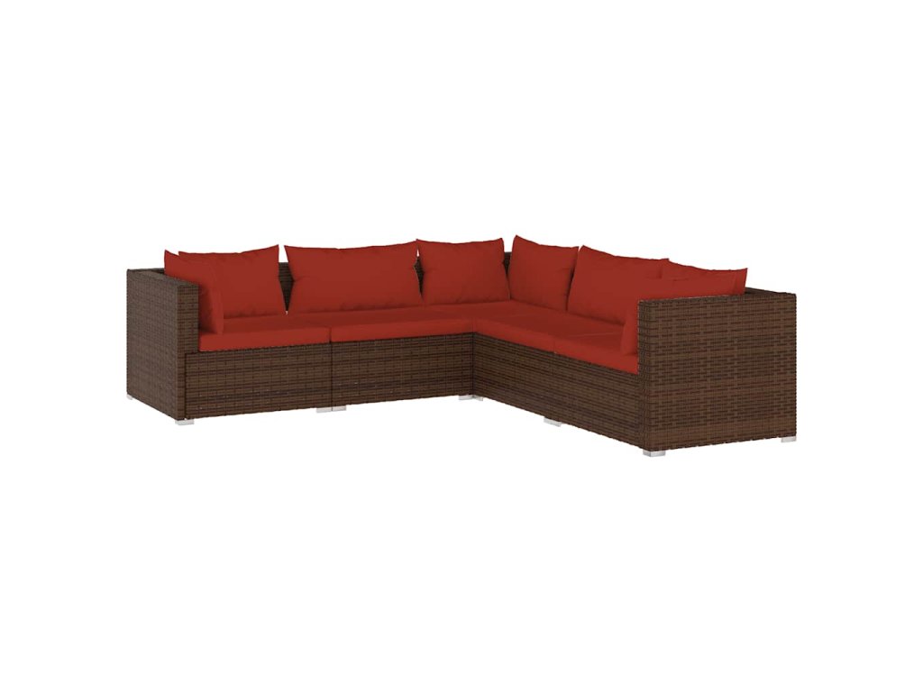 5dílná zahradní sedací souprava s poduškami polyratan hnědá 3101699