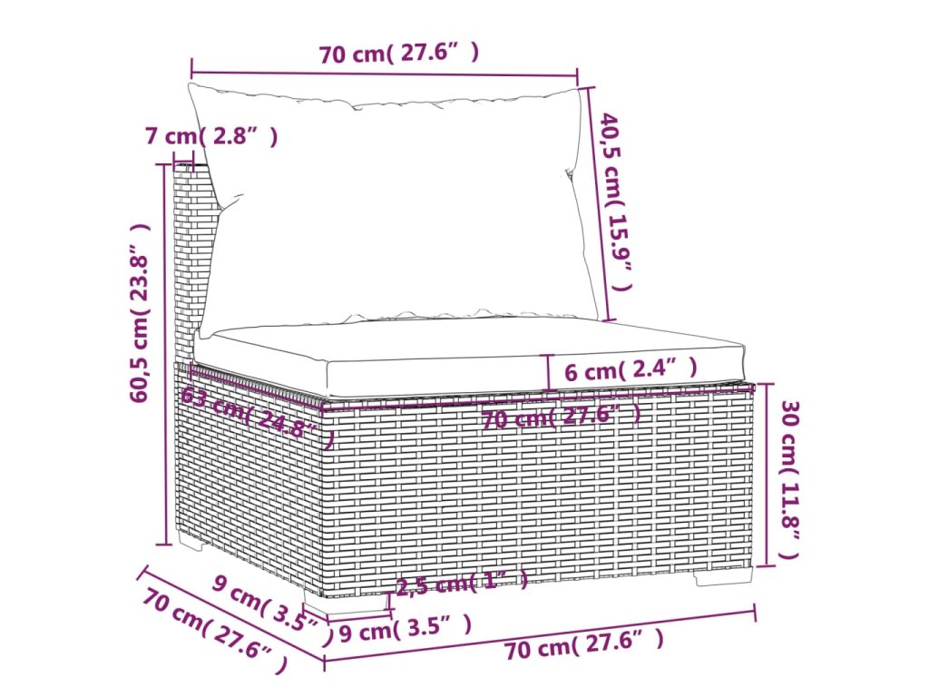 - Rozměry (jednotlivé): 70 x 70 x 60,5 cm (D x Š x V)