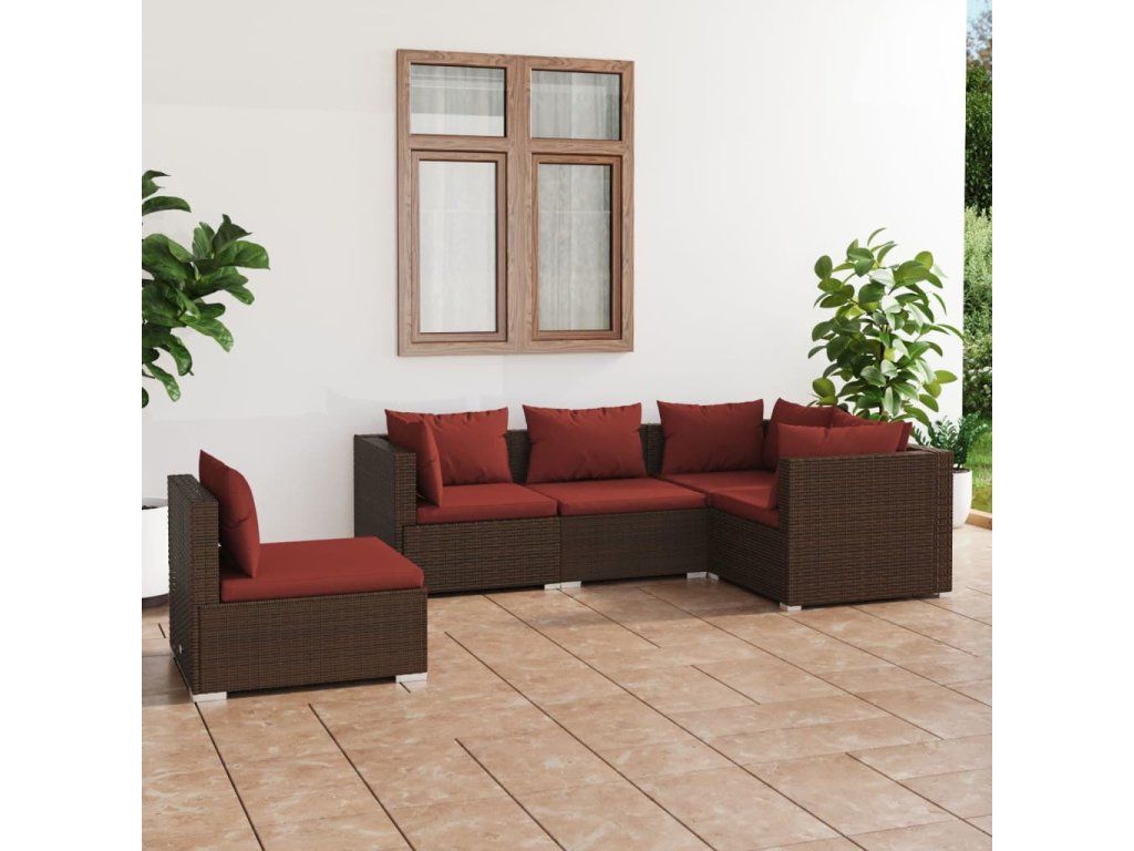 5dílná zahradní sedací souprava s poduškami polyratan hnědá 3102315