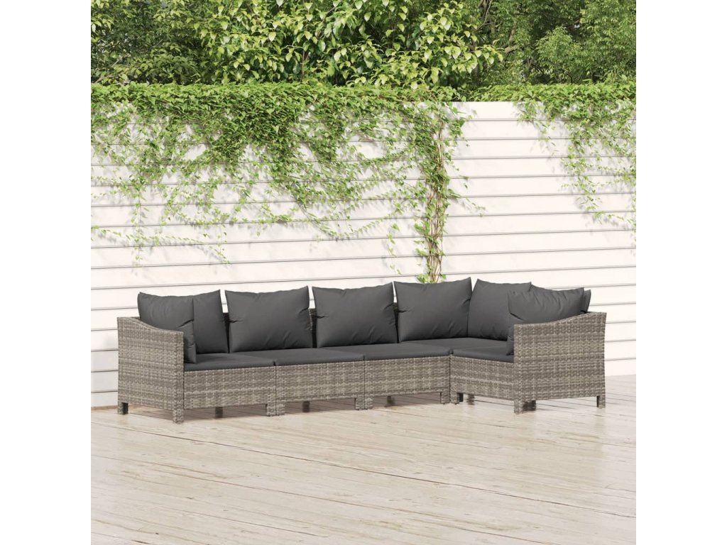 5dílná zahradní sedací souprava s poduškami šedá polyratan 3187274