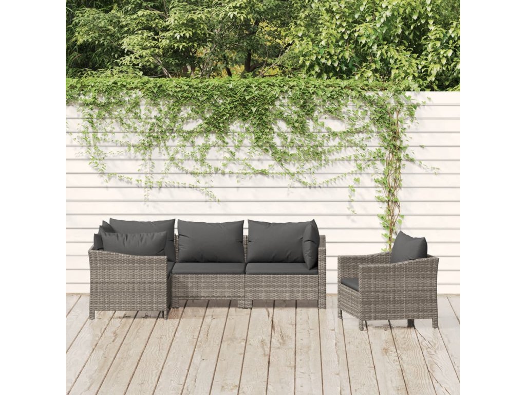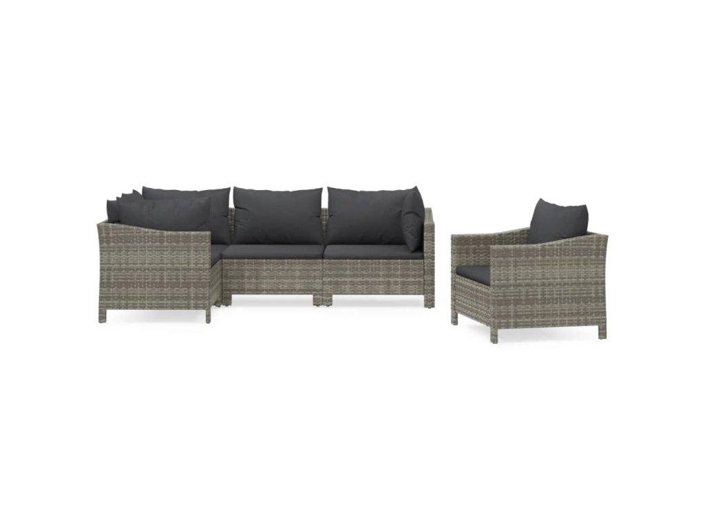 5dílná zahradní sedací souprava s poduškami šedá polyratan 3187280