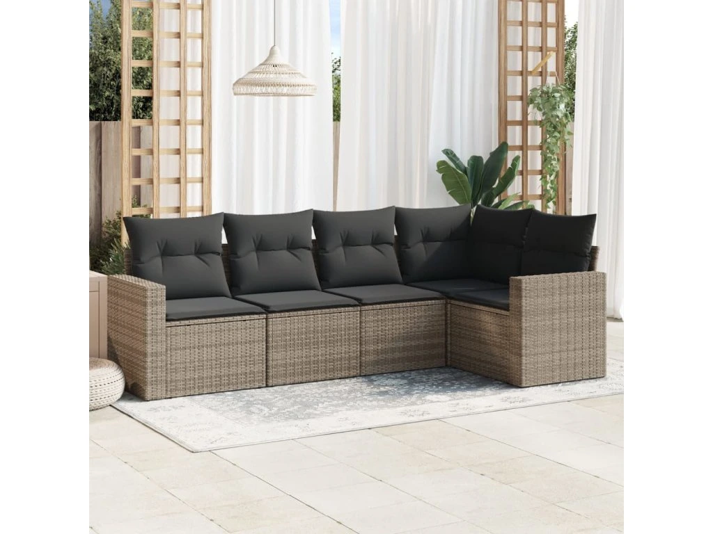 5dílná zahradní sedací souprava s poduškami šedá polyratan 3218920