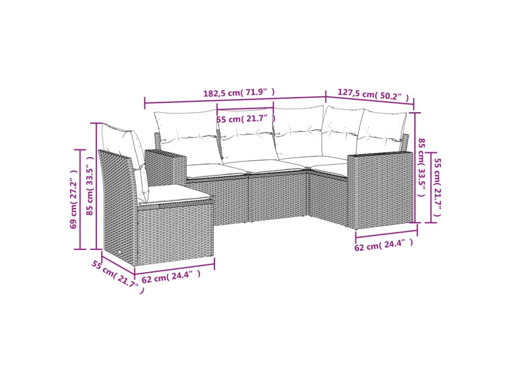 Tato zahradní sedací souprava je dokonalým doplňkem vaší zahrady, terasy nebo dvorku a poskytne vám pohodlné a příjemné místo, kde si můžete povídat s rodinou a přáteli nebo jen tak odpočívat a užívat si pobyt venku.
