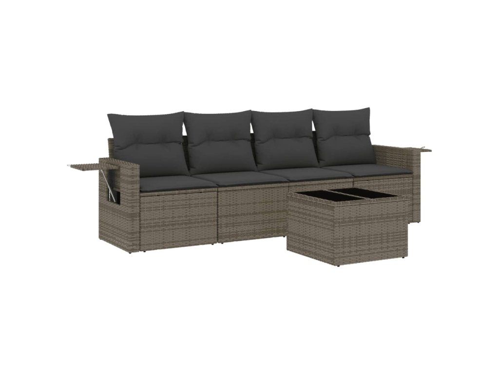 5dílná zahradní sedací souprava s poduškami šedá polyratan 3219889