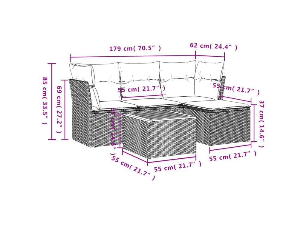 Tato zahradní sedací souprava je dokonalým doplňkem vaší zahrady, terasy nebo dvorku a poskytne vám pohodlné a příjemné místo, kde si můžete povídat s rodinou a přáteli nebo jen tak odpočívat a užívat si pobyt venku.