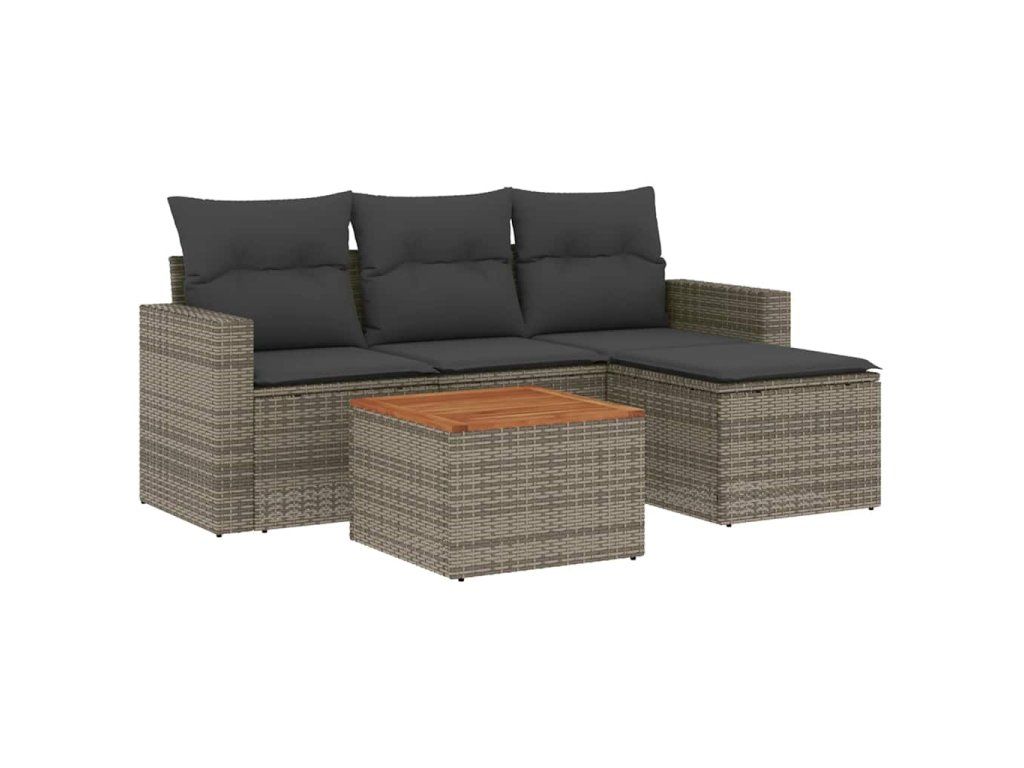 5dílná zahradní sedací souprava s poduškami šedá polyratan 3224093