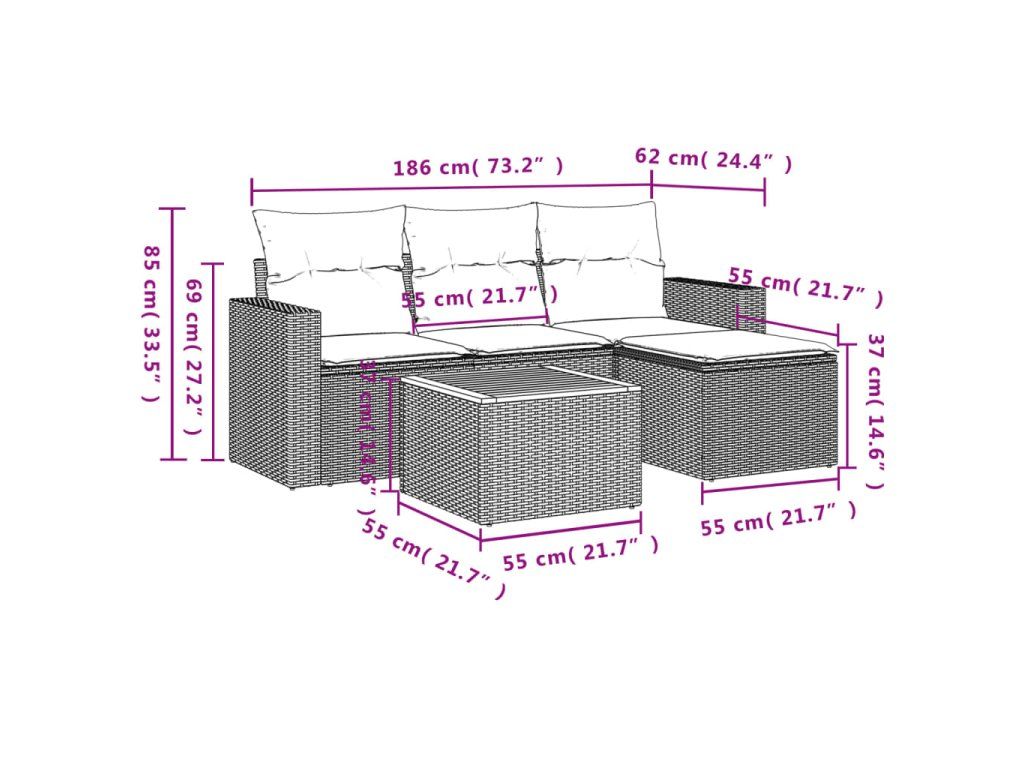 Tato zahradní sedací souprava je dokonalým doplňkem vaší zahrady, terasy nebo dvorku a poskytne vám pohodlné a příjemné místo, kde si můžete povídat s rodinou a přáteli nebo jen tak odpočívat a užívat si pobyt venku.