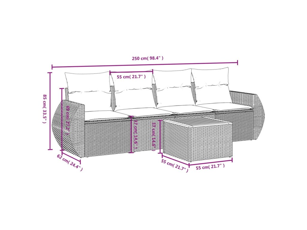 Tato zahradní sedací souprava je dokonalým doplňkem vaší zahrady, terasy nebo dvorku a poskytne vám pohodlné a příjemné místo, kde si můžete povídat s rodinou a přáteli nebo jen tak odpočívat a užívat si pobyt venku.