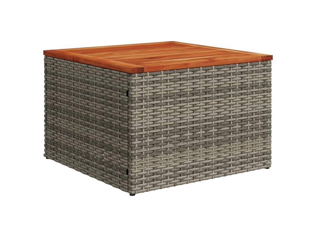 - Materiál: PE ratan, práškově lakovaná ocel, masivní akáciové dřevo s olejovou povrchovou úpravou