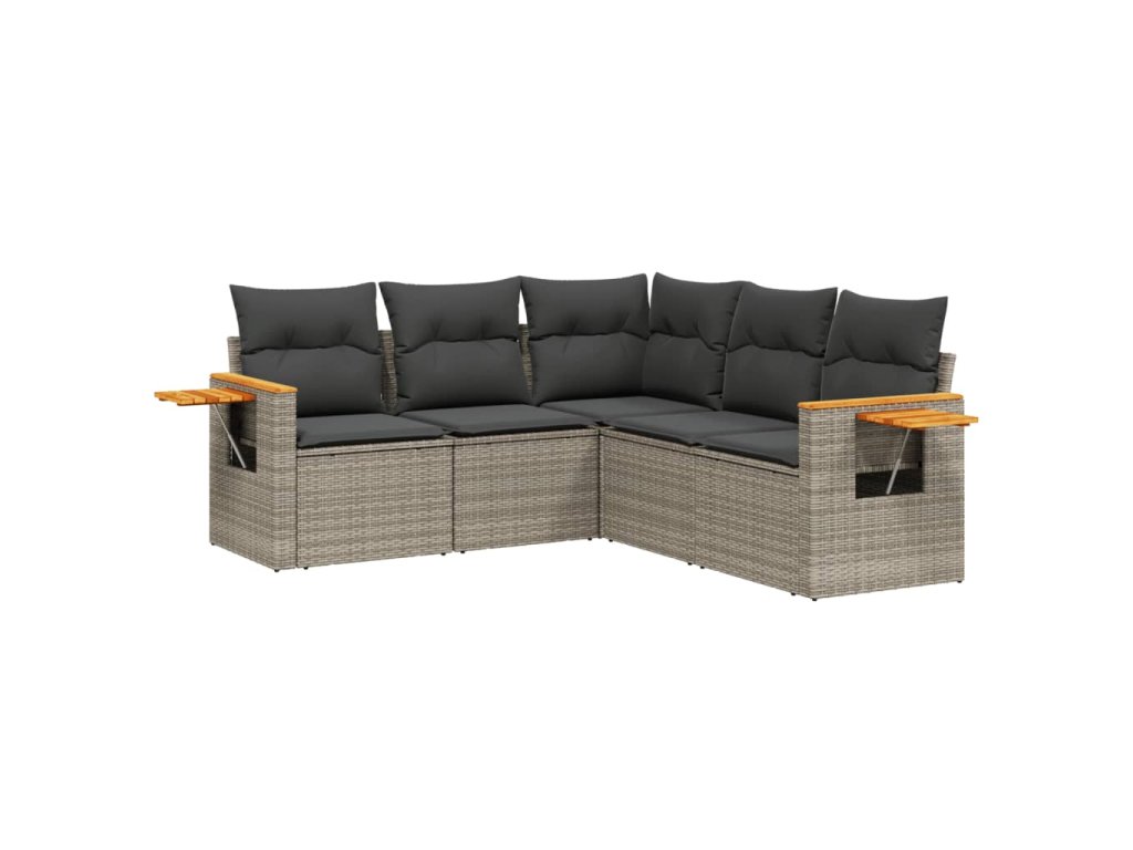 5dílná zahradní sedací souprava s poduškami šedá polyratan 3259204