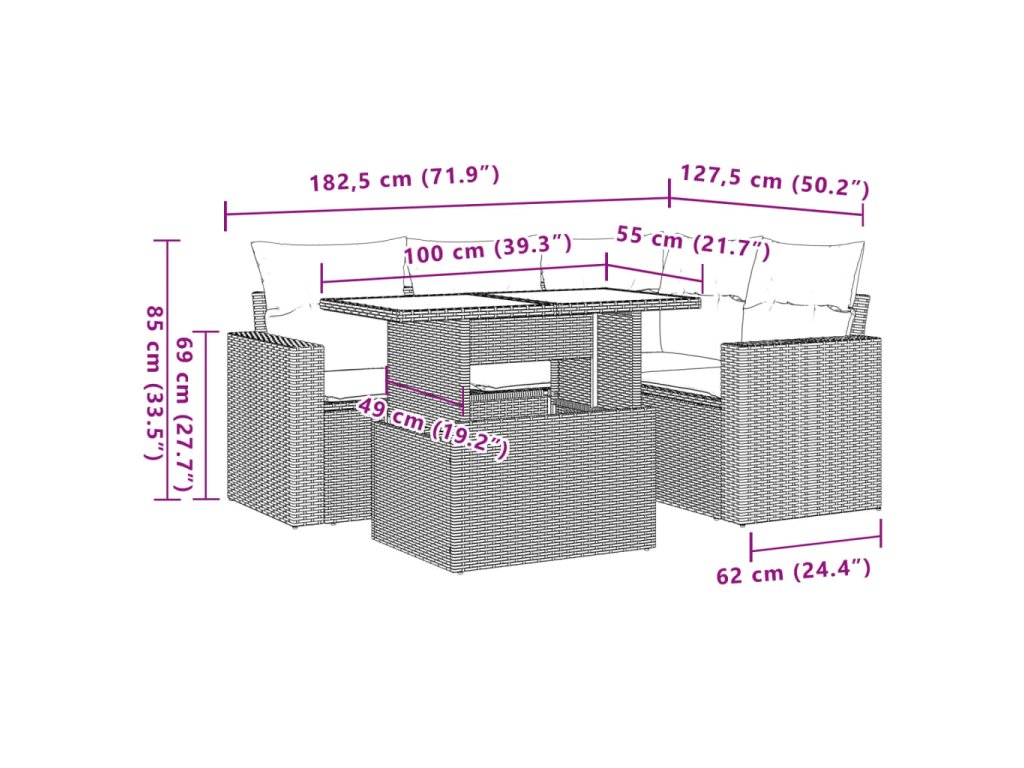 Tato zahradní sedací souprava je dokonalým doplňkem vaší zahrady, terasy nebo dvorku a poskytne vám pohodlné a příjemné místo, kde si můžete povídat s rodinou a přáteli nebo jen tak odpočívat a užívat si pobyt venku.