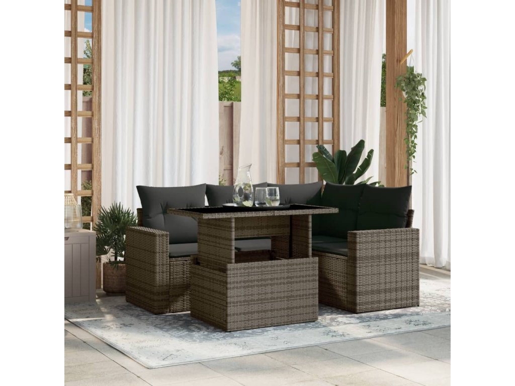 5dílná zahradní sedací souprava s poduškami šedá polyratan 3267250