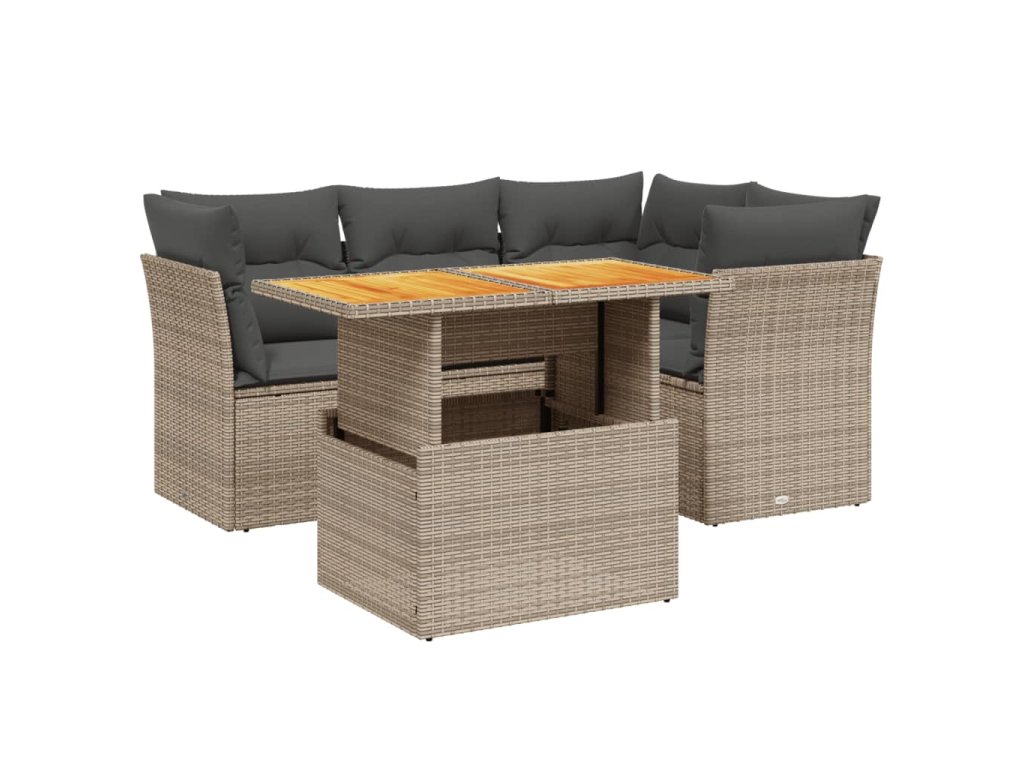 5dílná zahradní sedací souprava s poduškami šedá polyratan 3270815