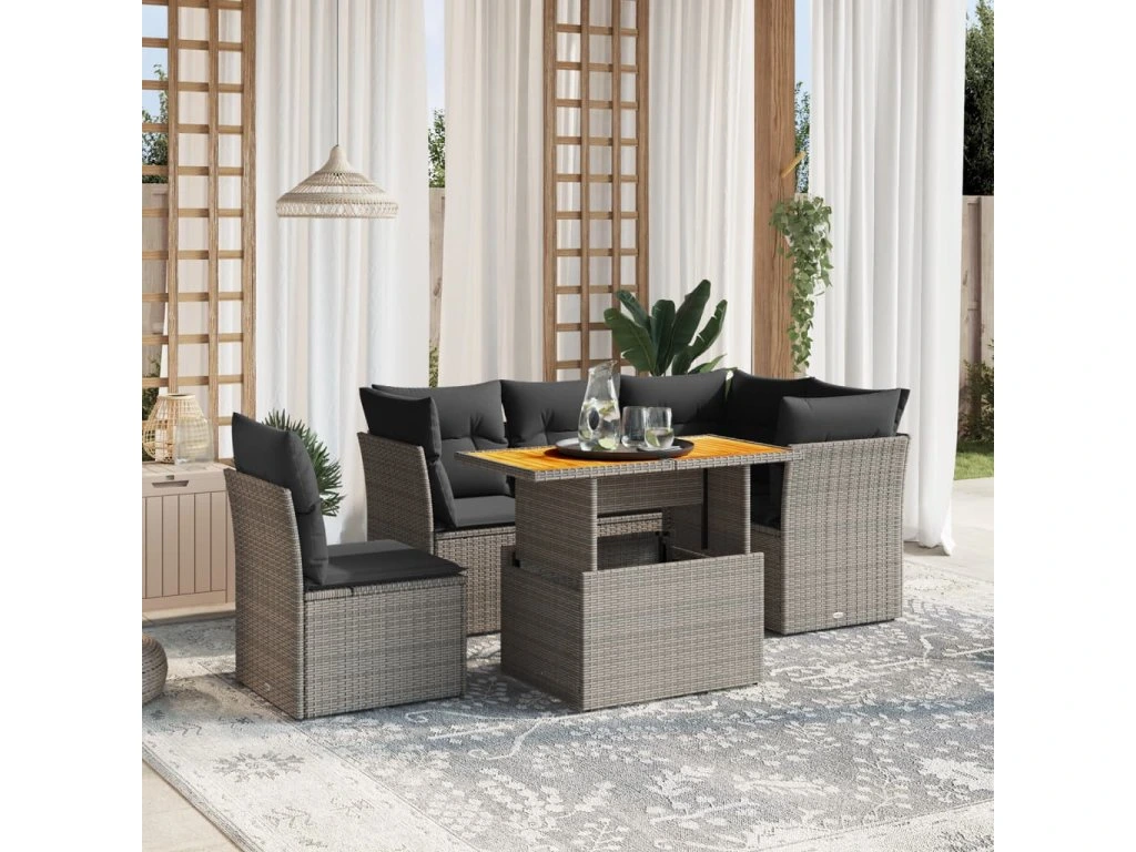 5dílná zahradní sedací souprava s poduškami šedá polyratan 3270836