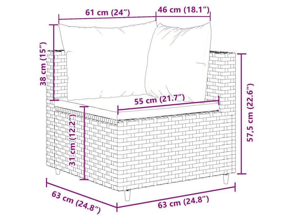 - Rozměry podušky na sedák: 55/63 x 55 x 3 cm (Š x H x T)