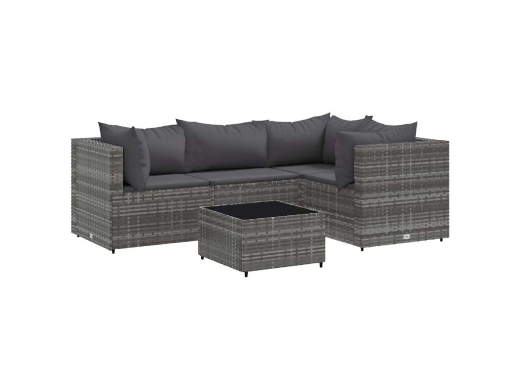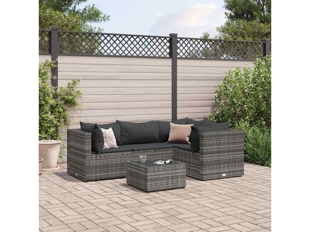 5dílná zahradní sedací souprava s poduškami šedá polyratan 3308082