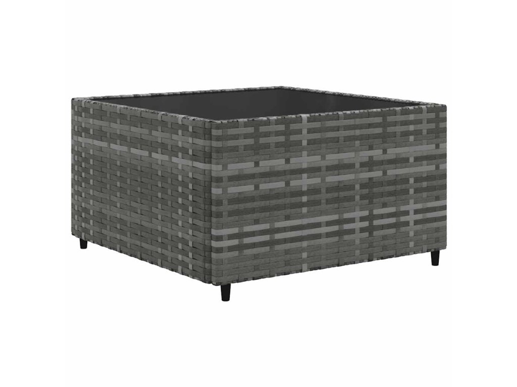- Materiál: PE ratan, práškově lakovaná ocel, tvrzené sklo