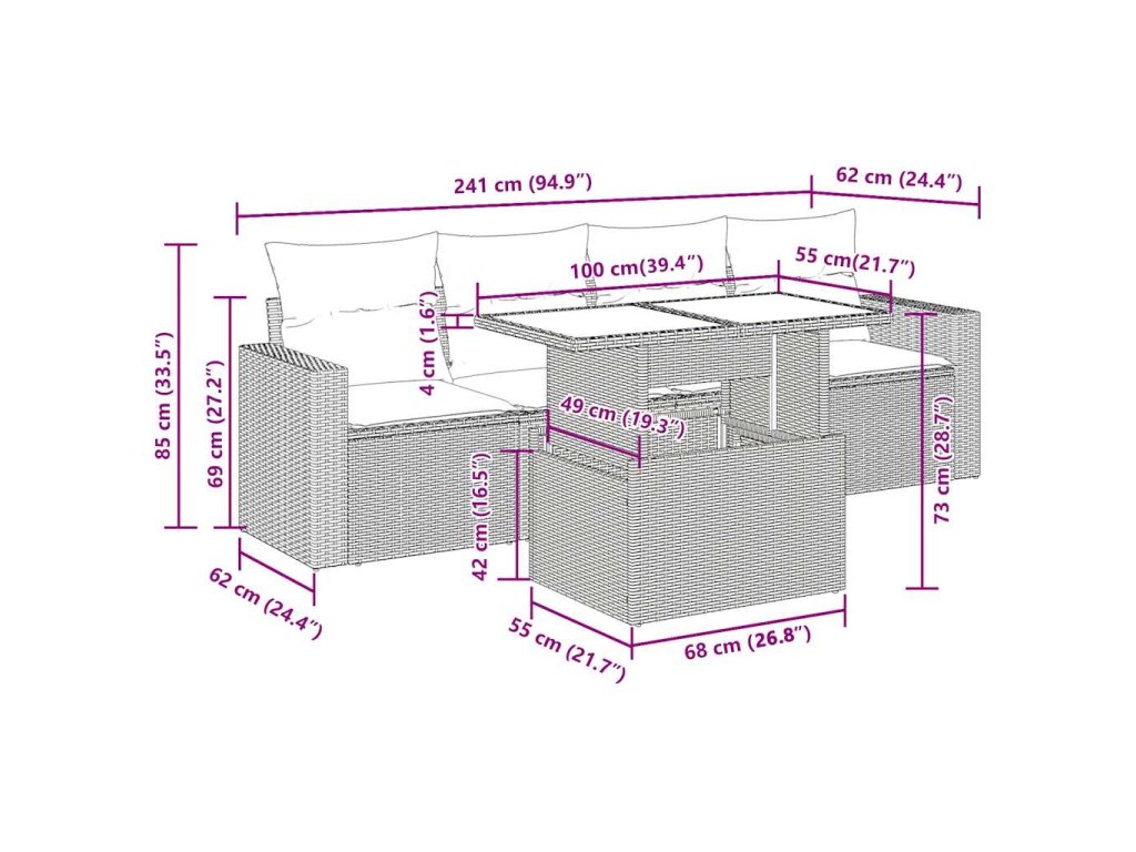 Tato zahradní sedací souprava je dokonalým doplňkem vaší zahrady, terasy nebo dvorku a poskytne vám pohodlné a příjemné místo, kde si můžete povídat s rodinou a přáteli nebo jen tak odpočívat a užívat si pobyt venku.