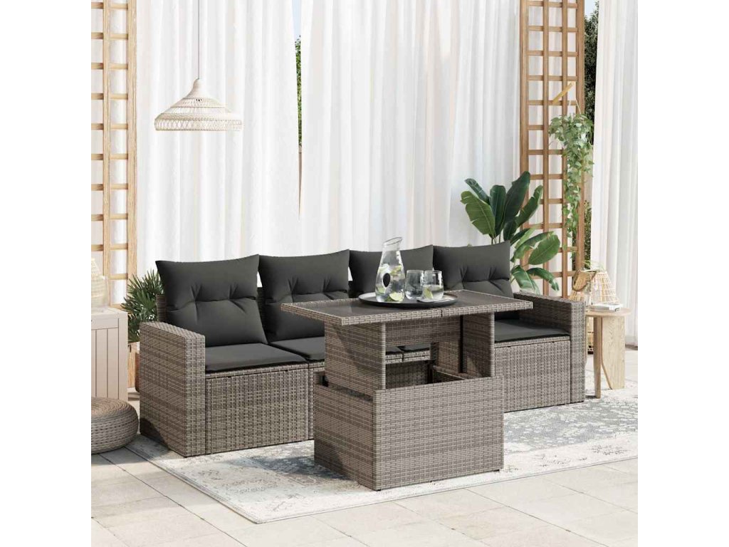 5dílná zahradní sedací souprava s poduškami šedá polyratan 3326241