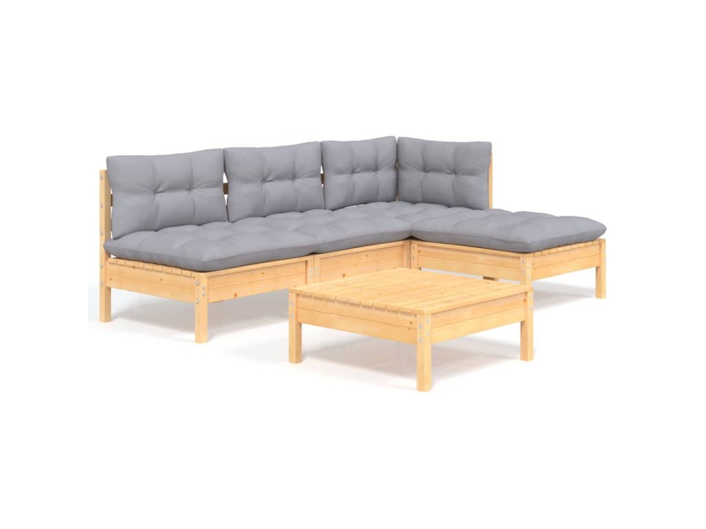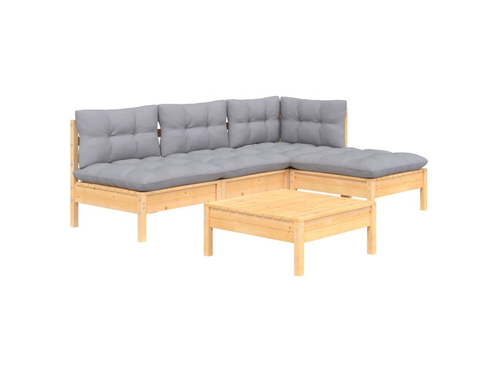 5dílná zahradní sedací souprava s šedými poduškami borovice 3096303