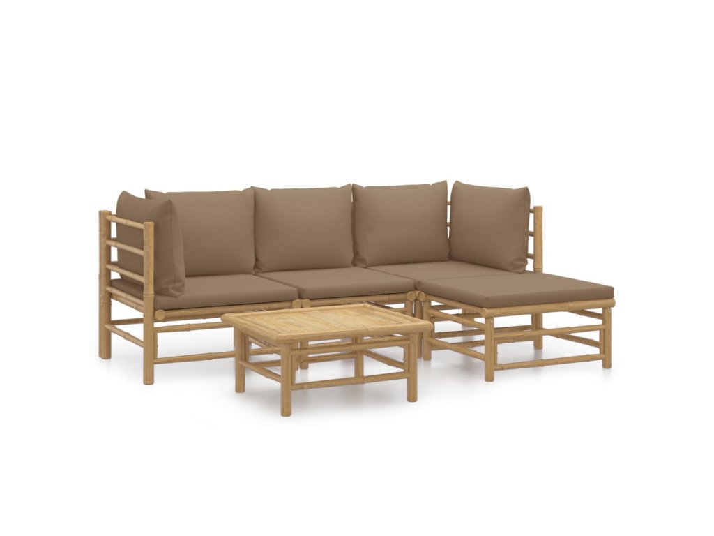 5dílná zahradní sedací souprava s taupe poduškami bambus 3155114