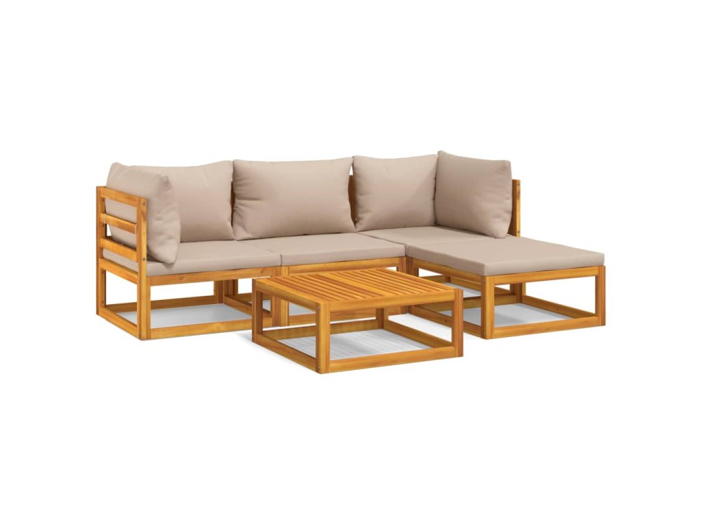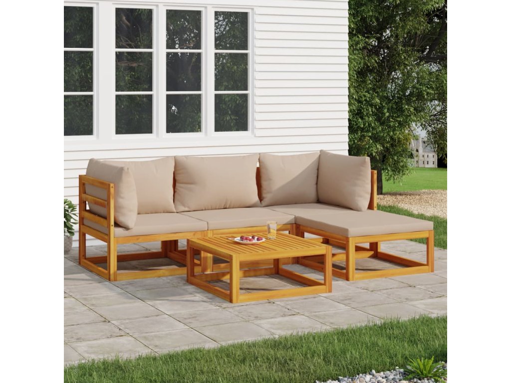 5dílná zahradní sedací souprava s taupe poduškami masivní dřevo 3155248