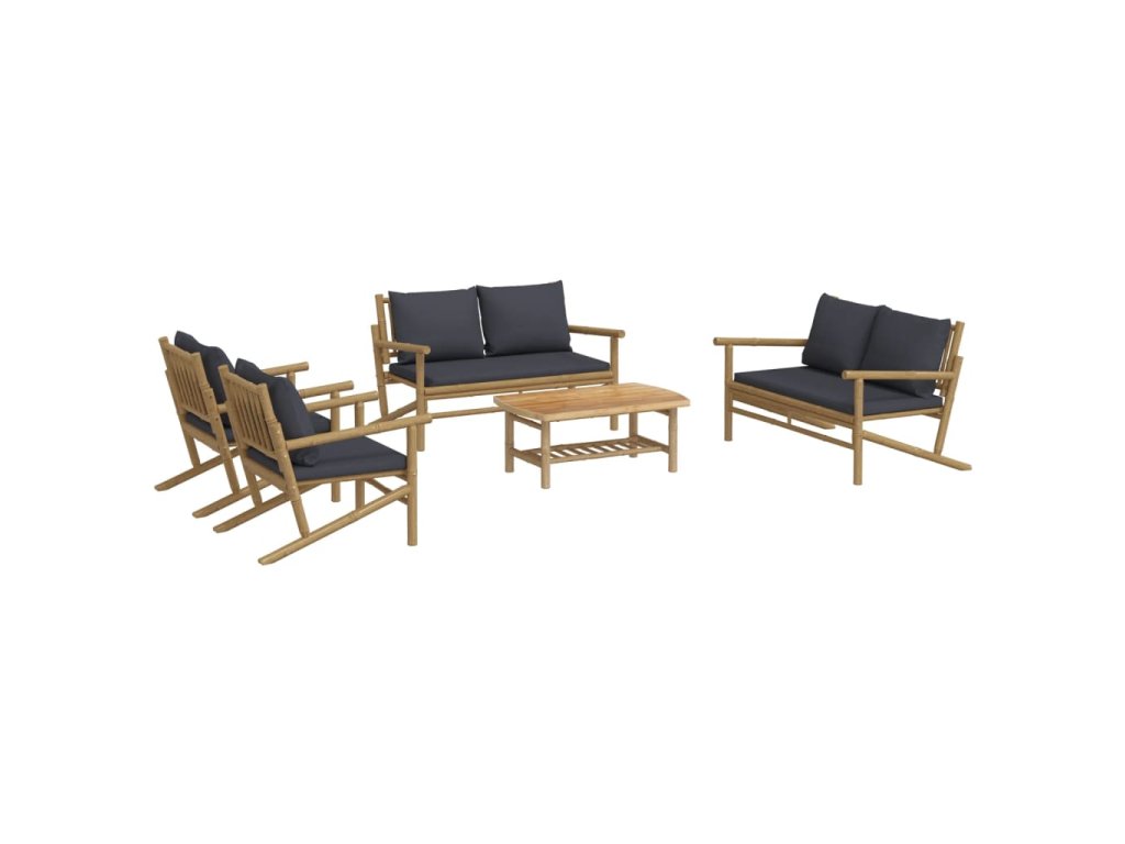 5dílná zahradní sedací souprava s tmavě šedými poduškami bambus 3156474