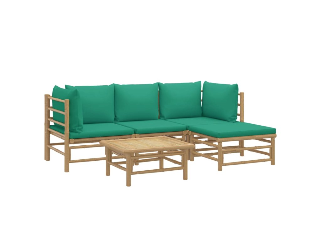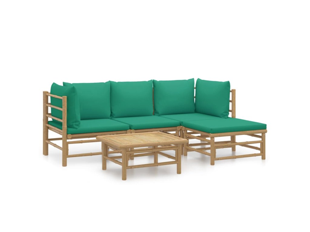 5dílná zahradní sedací souprava se zelenými poduškami bambus 3155146