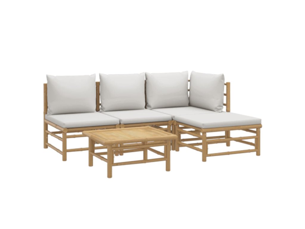 5dílná zahradní sedací souprava světle šedé podušky bambus 3155081