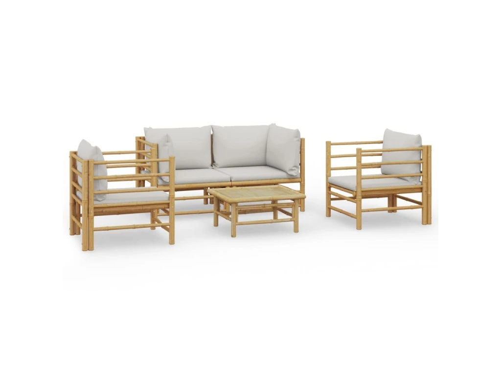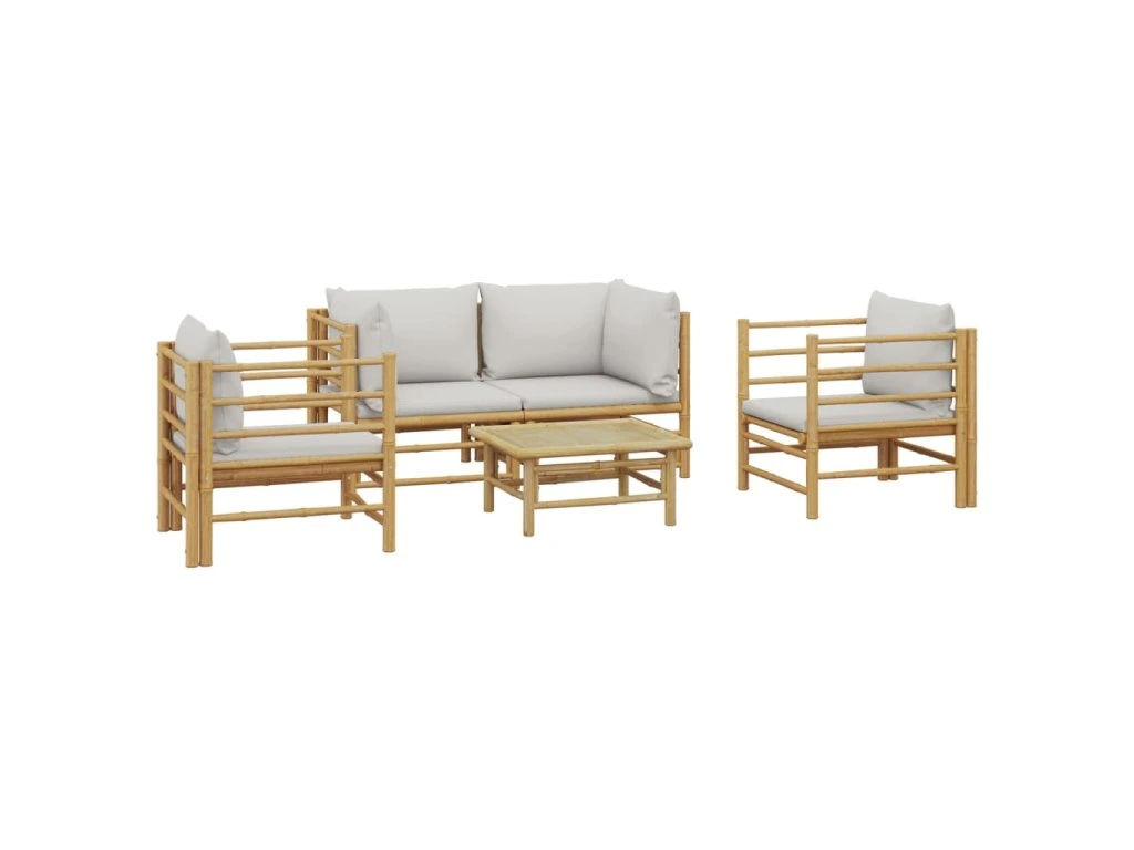 5dílná zahradní sedací souprava světle šedé podušky bambus 3155089