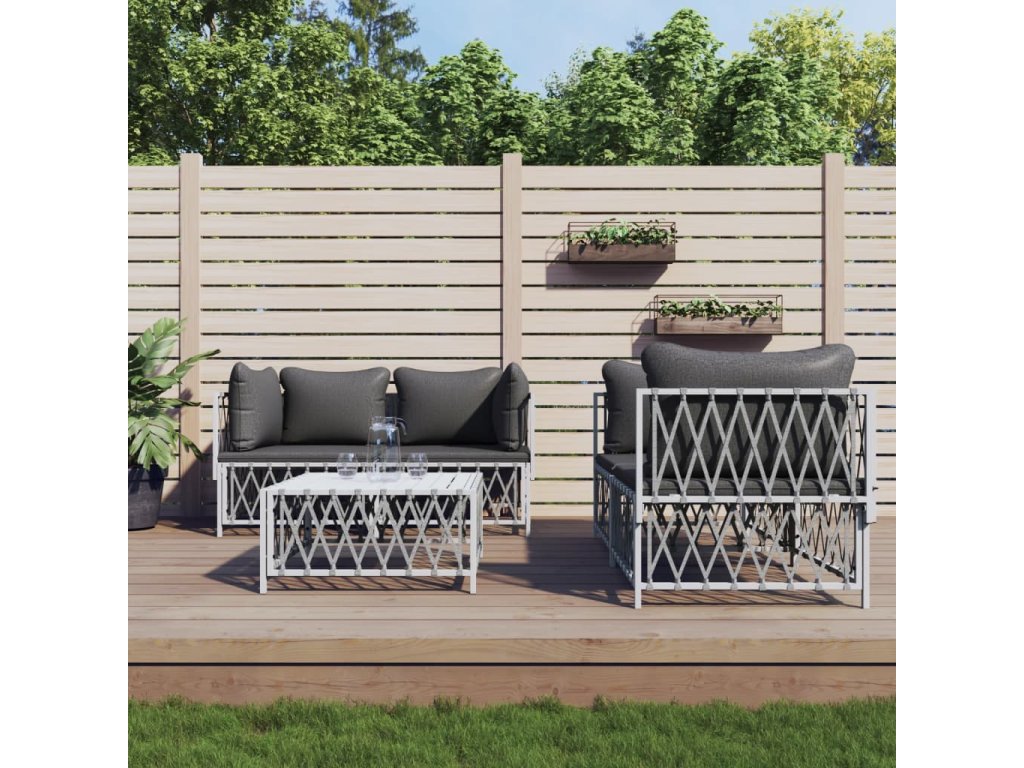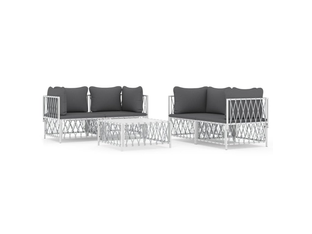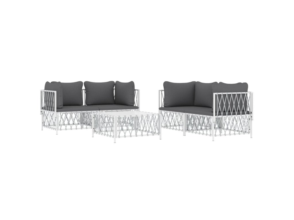 5dílná zahradní souprava s poduškami bílá ocel 3186824