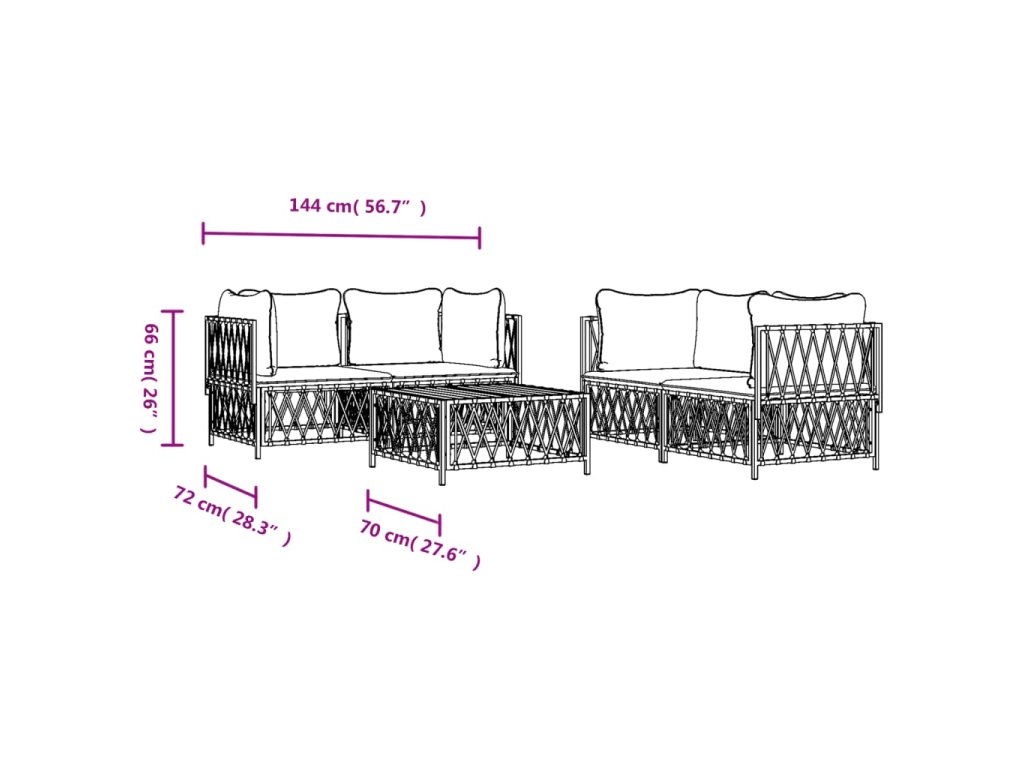- Robustní rám: Jelikož má práškově lakovaný ocelový rám, je tato sedací souprava robustní a stabilní pro každodenní venkovní použití.