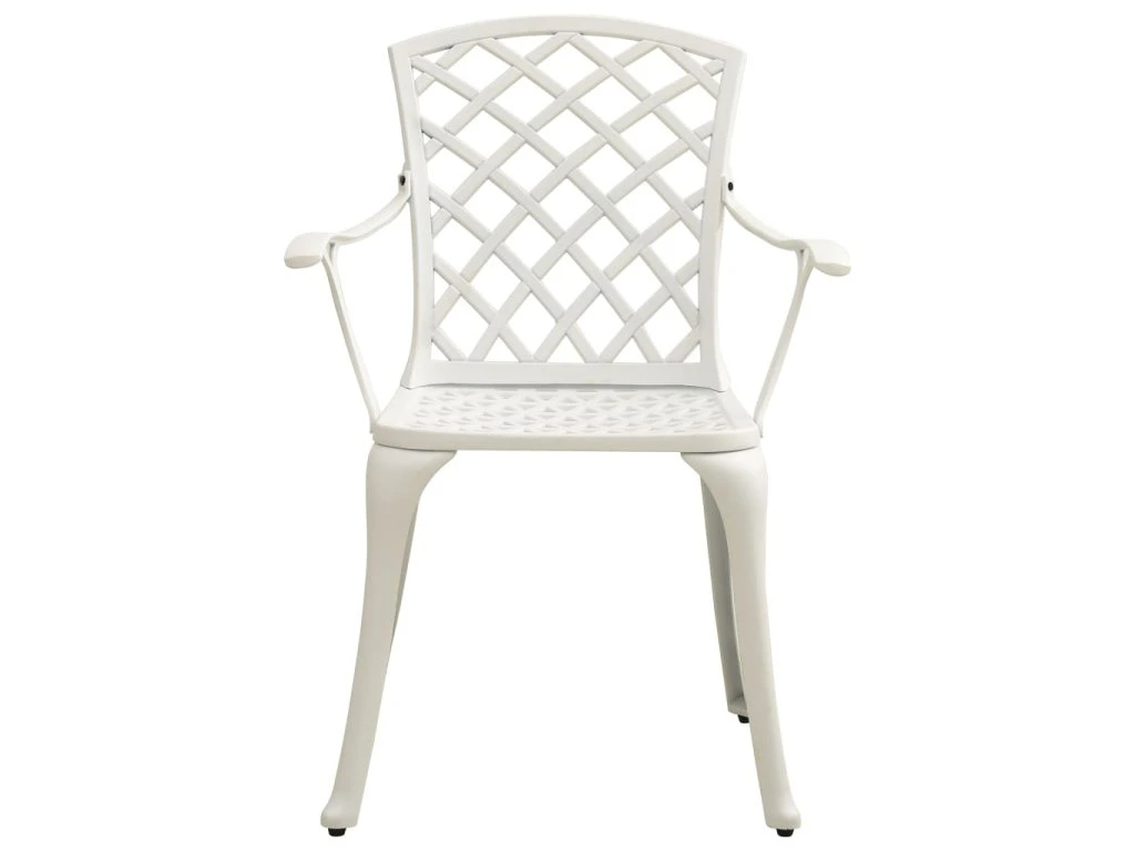 Zahradní stůl a židle z litého hliníku jsou robustní a hodně toho vydrží. Jelikož jsou vyrobené z materiálu, který nerezaví a nepodléhá klimatickým vlivům, jedná se o ideální nábytek pro venkovní použití. Vzhledem ke svému překrásnému designu zapůsobí bistro set ve vašem venkovním bydlení jako elegantní doplněk. Konferenční stolek má navíc uprostřed otvor, kam můžete zasunout slunečník, abyste se ochránili před sluníčkem či deštěm.