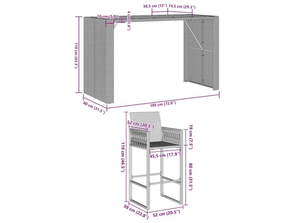 Tento módní zahradní barový set, který kombinuje styl a funkčnost, se jistě stane středem pozornosti vaší zahrady, terasy a jakéhokoli jiného obytného prostoru.