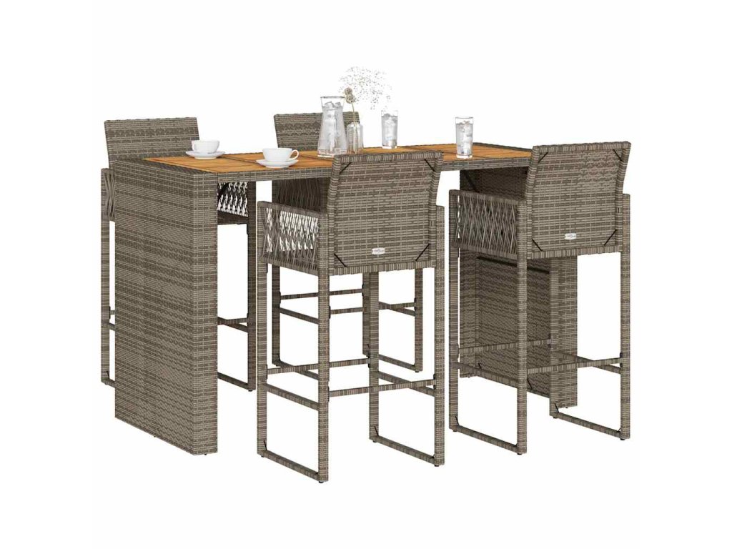 5dílný zahradní barový set bez podušek šedý polyratan akácie 3328893