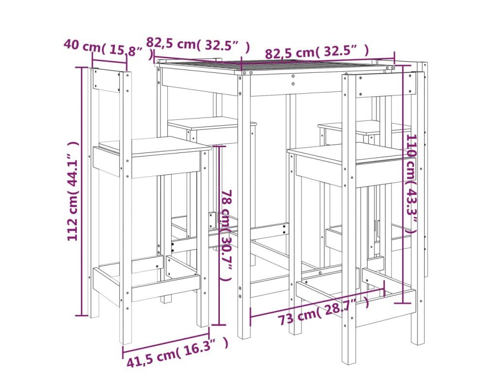 - Rozměry barového stolu: 82,5 x 82,5 x 110 cm (Š x H x V)