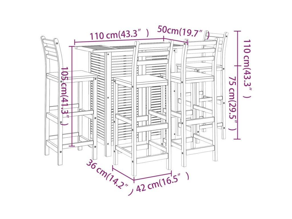 5dílný zahradní barový set masivní akáciové dřevo 3115999