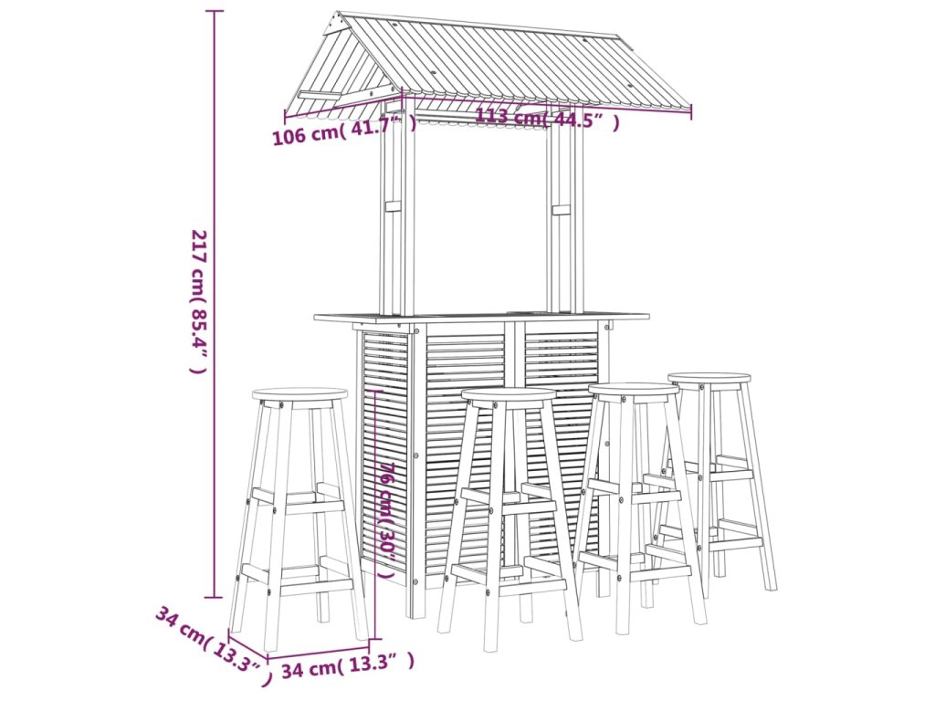 Tento dřevěný zahradní barový set se pyšní elegantním designem a je jako stvořený k tomu, aby se stal dominantou vaší zahrady, dvorku nebo terasy.