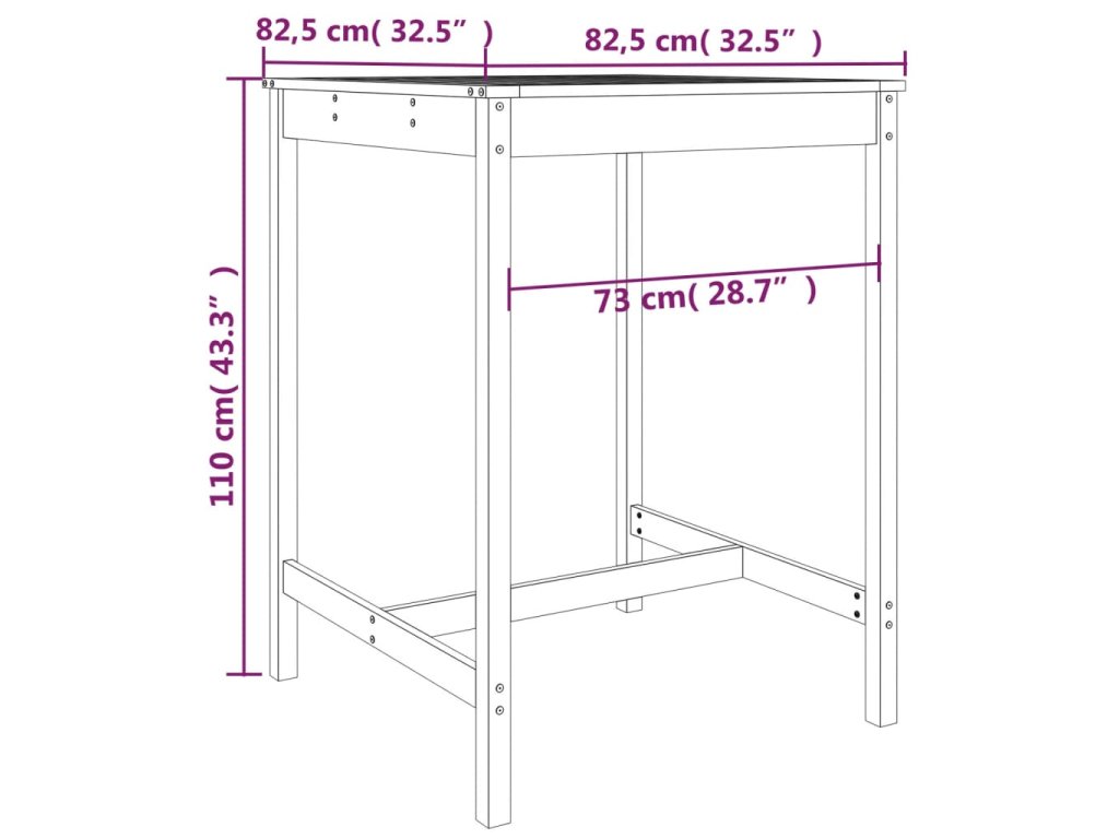 - Rozměry zahradního stolku: 82,5 x 82,5 x 110 cm (D x Š x V)